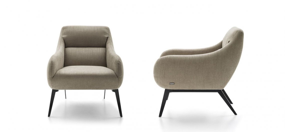 Proporzioni generose e curve morbide creano un connubio perfetto tra comfort ed eleganza. La sinuosità delle linee rende la poltrona Dia un modello dal design raffinato in stile borghese. Disponibile in pelle e tessuto.