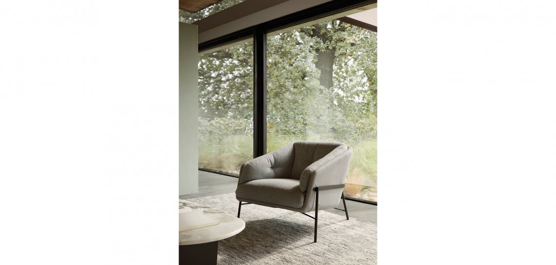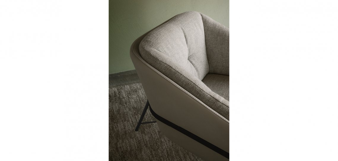 Fashion ha una struttura sofisticata e leggerissima, un nastro che, non solo ne disegna la forma ma la sostiene e la abbraccia. Infine un rivestimento che come un abito sartoriale
