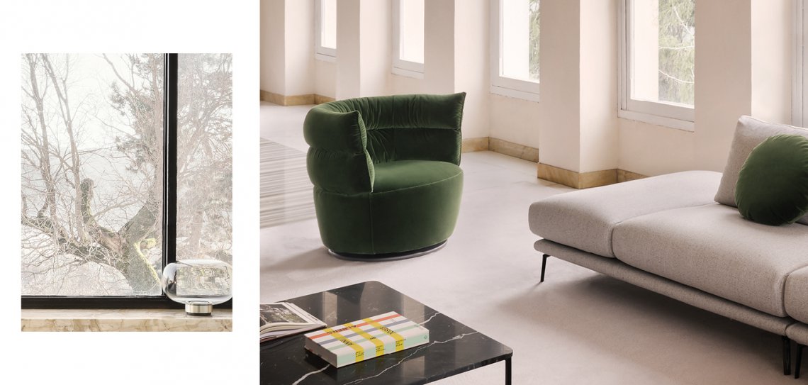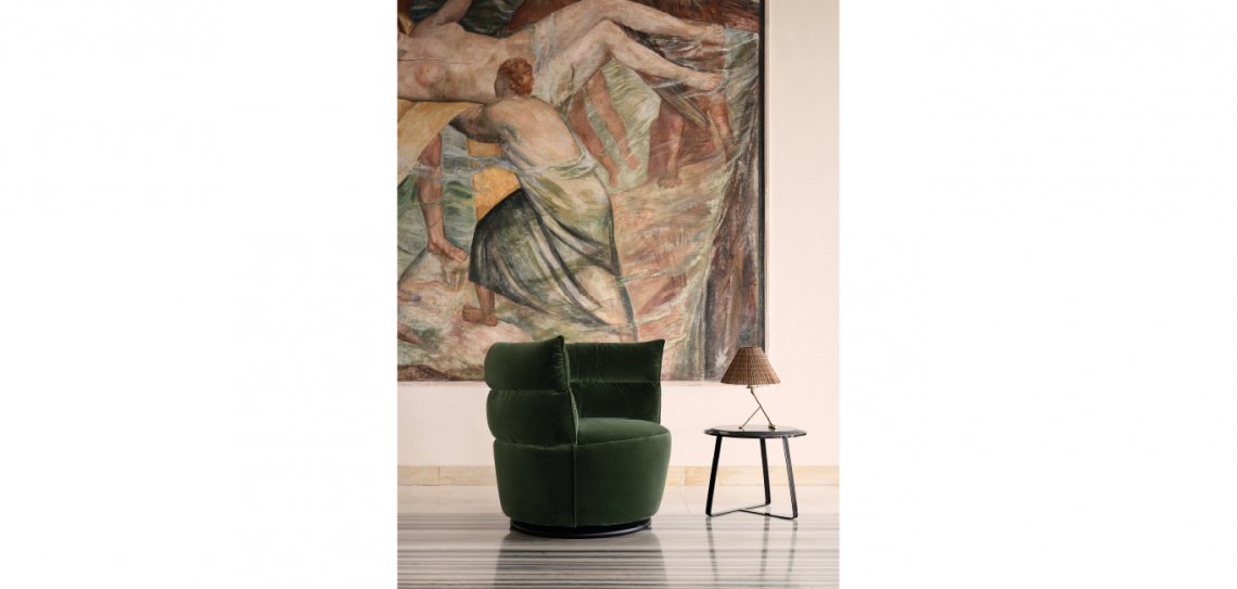 Julie si caratterizza per elementi dal disegno essenziale ma raffinato in ogni dettaglio. Segni peculiari sono l’imbottitura ricca e morbida e le impunture che corrono lungo tutta la superficie dello schienale.