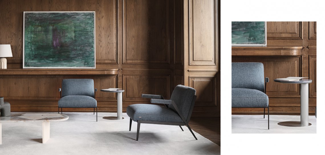 La rigidità della struttura metallica in contrasto con il comfort della seduta creano un’armonia inaspettata e un senso di leggerezza che caratterizzano la poltrona Lima. Disponibile in pelle, tessuto o versione mix.
