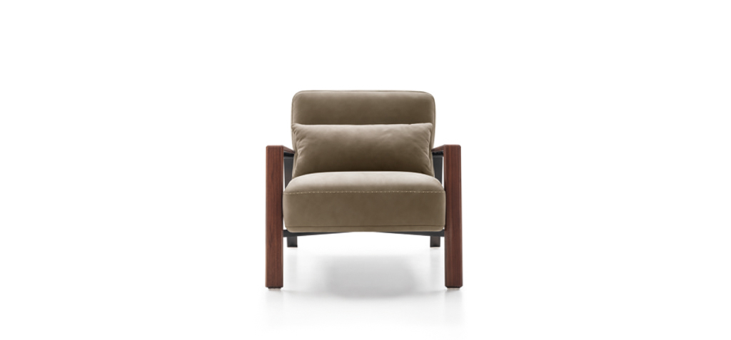 Dal design minimale e deciso, la poltrona Luis presenta una struttura in metallo rivestita da una cover in legno che la rende adatta a qualsiasi location.