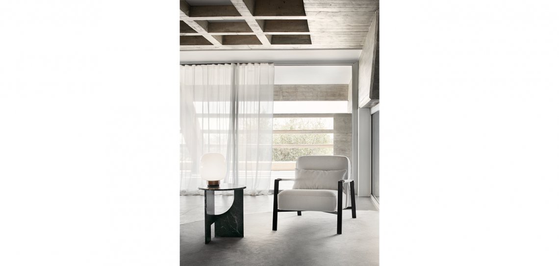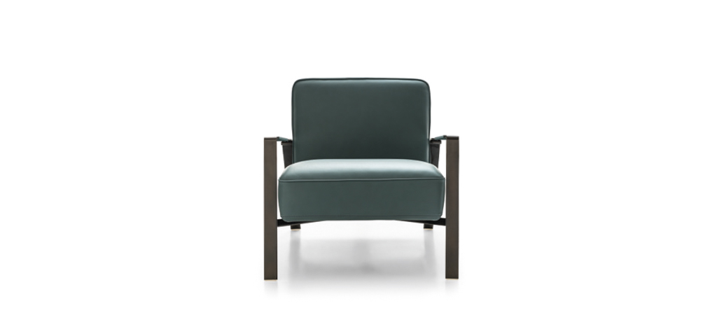 Rho è una poltrona dal design rigoroso e minimale, dalle influenze Bauhaus. Disponibile in pelle, tessuto o versione mix.