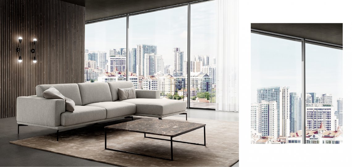 Comfort e volumi misurati caratterizzano il divano Airon. Il modello prevede diversi elementi che ne moltiplicano le possibilità di utilizzo. Lo schienale regolabile, per esempio, offre diverse opzioni di seduta: con sostegno più alto, ideale per conversare; comfort, perfetta per leggere; relax, più profonda, per la massima comodità.