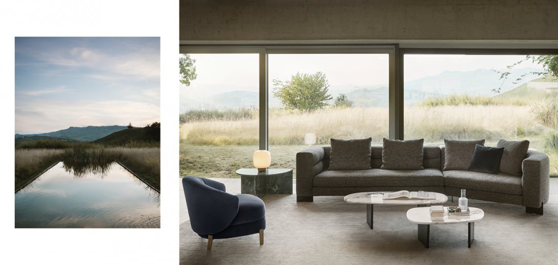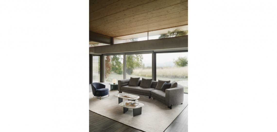 Linee classiche, schienale curvo e una particolare trapuntatura che corre lungo lo schienale, unito al dettaglio dei piedini in metallo, donano una sensazione di eleganza e raffinatezza che rendono il divano Aura adatto ad ogni ambiente. Grazie ai diversi moduli si possono creare composizioni lineari o a L per un comfort davvero su misura.