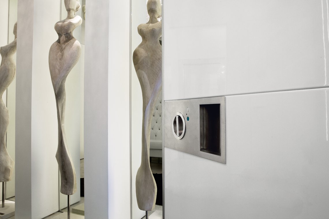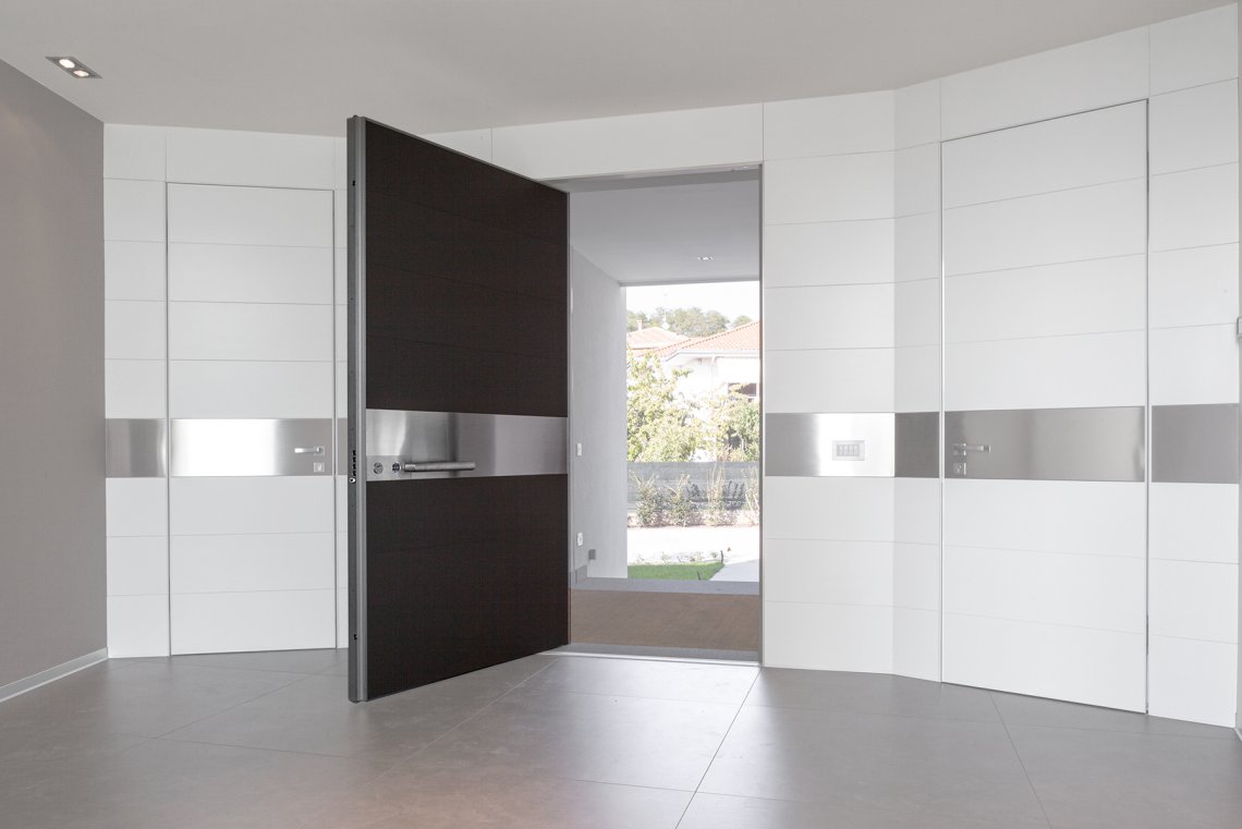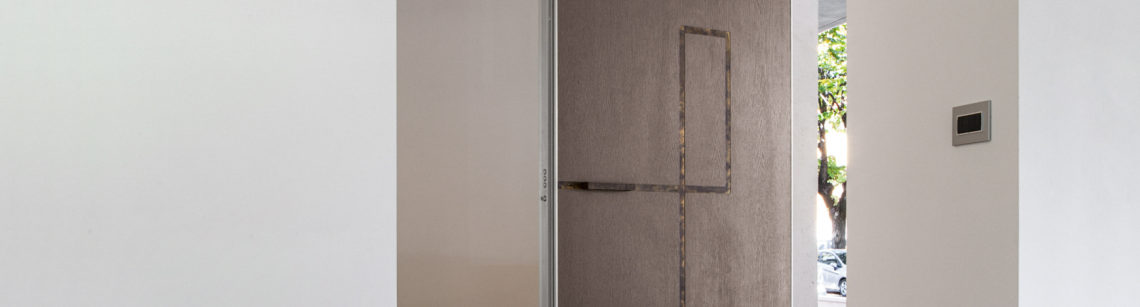 La porta blindata per le grandi dimensioni con funzionamento a bilico verticale e complanare al muro.Synua è la porta blindata che non conosce limiti: ideale per le grandi dimensioni, è il connubio perfetto tra tecnica e design. Dotata di apertura a bilico e complanare al muro, è rivestita da settori o a pannello unico o a disegno del cliente e può raggiungere i 3000 mm di larghezza e i 6200 mm di altezza standard. A richiesta può essere realizzata con dimensioni maggiori.