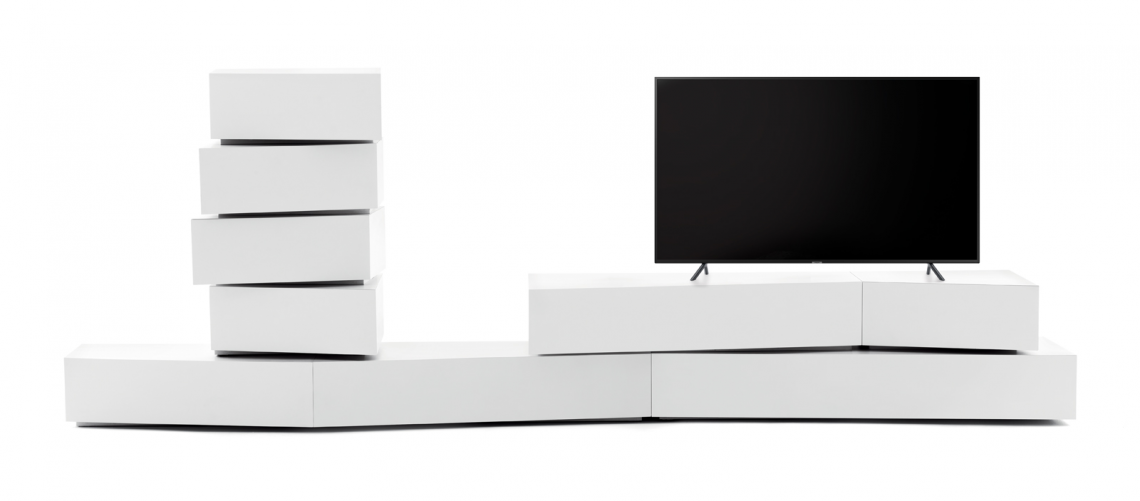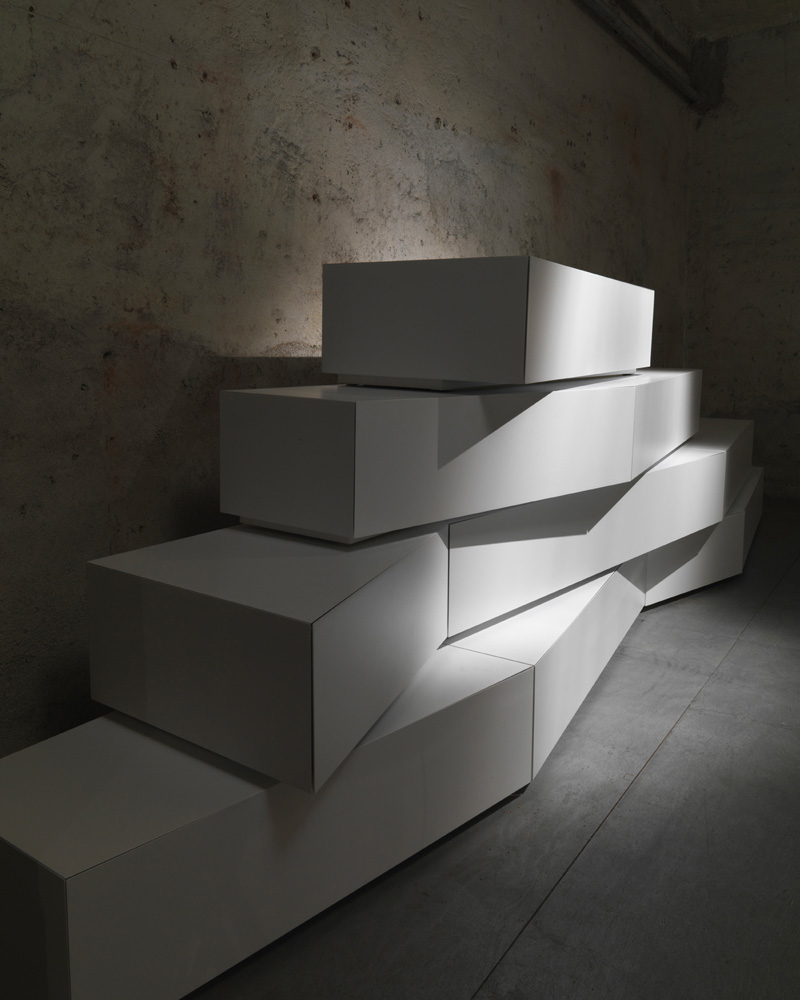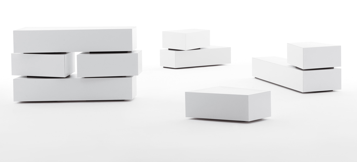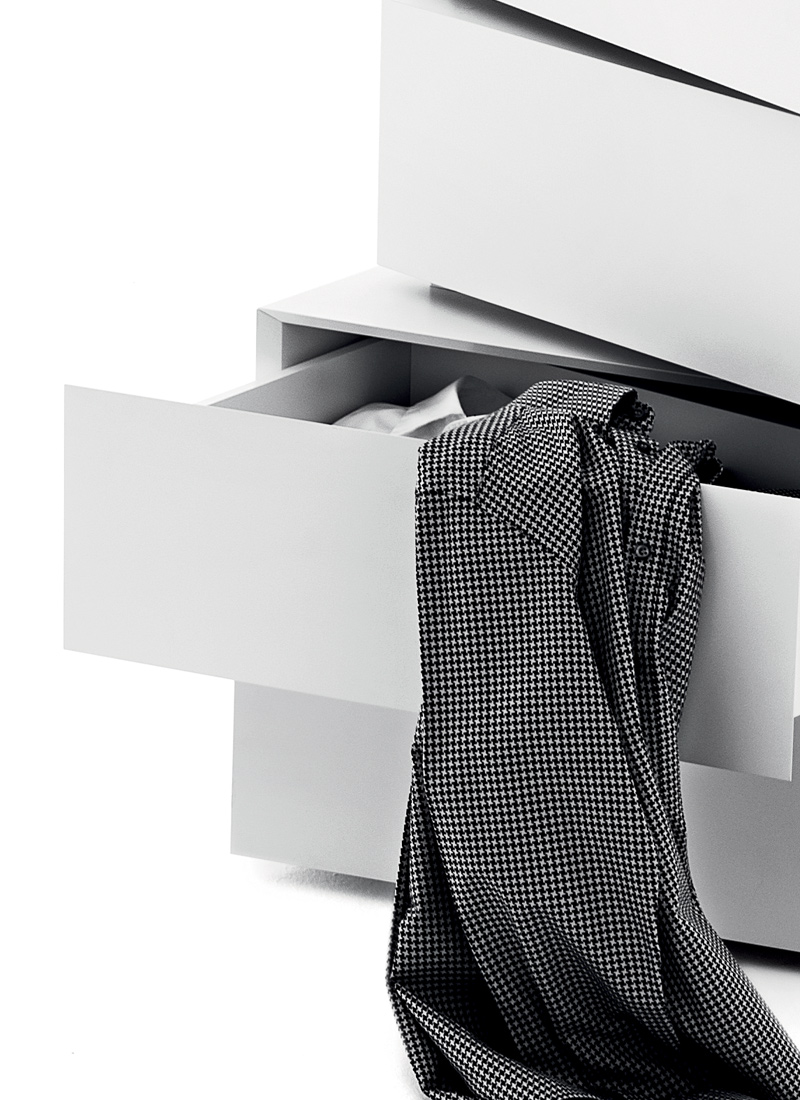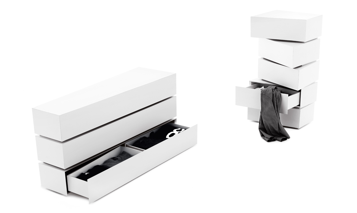 Contenitori in mdf dall’inusuale forma trapezoidale da combinare secondo il proprio gusto o necessità. Una collezione di volumi versatili e fuori dagli schemi ideali per risolvere, grazie alle diverse profondità, i problemi di spazio e progettati per trovare ospitalità in ogni ambiente della casa. Possono trasformarsi in originale cassettiera o comodino per la camera da letto, divertente mobile tv o credenza per il living.