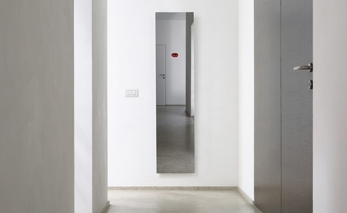 Può apparire ad un osservatore distratto come una semplicissima specchiera a tutta altezza, Lipstick lo specchio di Bruno Rainaldi con disegno serigrafato, ma alla seconda occhiata di certo non sfuggirà quel piccolo sensualissimo dettaglio rosso. Quel bacio a fior di labbra lasciato in custodia ad un specchio a parete, sognando che Marilyn Monroe lo abbia lasciato proprio a noi ,o immaginando un dolcissimo saluto tra due amanti.
