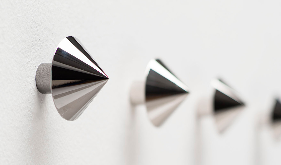 è un neppur troppo celato omaggio al punk, Borchia il gancio appendiabiti disegnato da Lapo Ciatti. La sua estetica è un chiaro rimando alle borchie che si applicano sui vestiti e, come il movimento a cui si ispira vuole essere oggetto forte e deciso, non convenzionale, fuori dagli schemi.