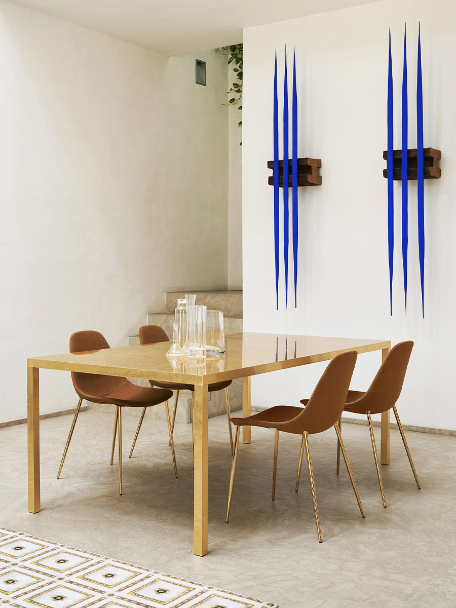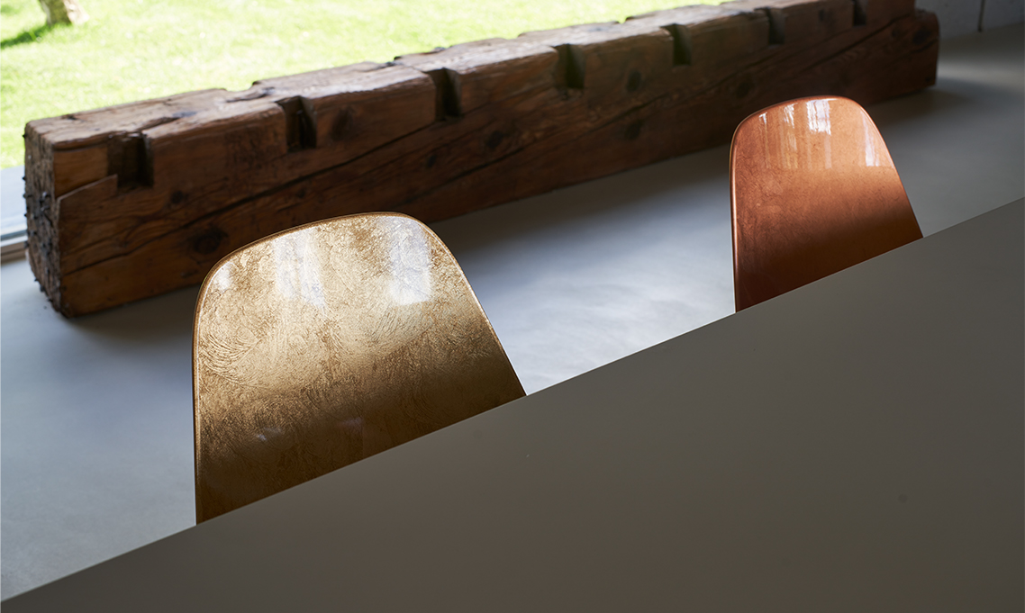 Lucida o opaca, preziosa o dal sapore industrial, può essere ricoperta da foglie leggere – in oro, argento, rame –, lucidata a mano nella versione a specchio, vestita con finiture dal sapore materico effetto bronzo o cemento, o regalare bagliori cangianti grazie alle nuove verniciature metalliche oro o argento.