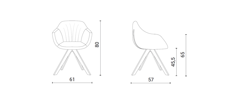 Poltroncina con basamento in faggio e morbida seduta rivestita in pelle, eco pelle nabuk o velvet.
