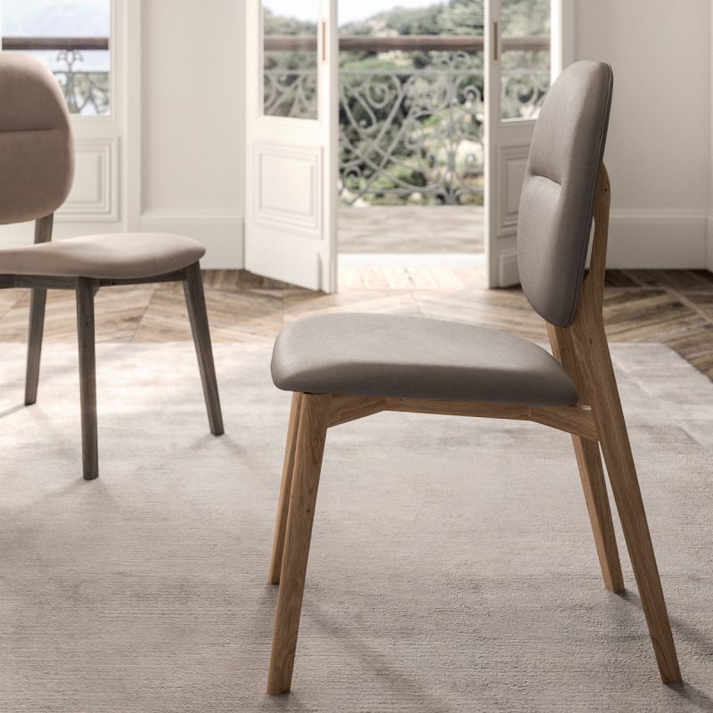Dall’armonico incontro tra legno e pelle prende forma una seduta che mette a nudo i suoi elementi essenziali. Il rivestimento sapientemente lavorato, evidenzia le cuciture sartoriali e l’impuntura che esalta lo schienale concepito ergonomicamente per fornire il massimo comfort.