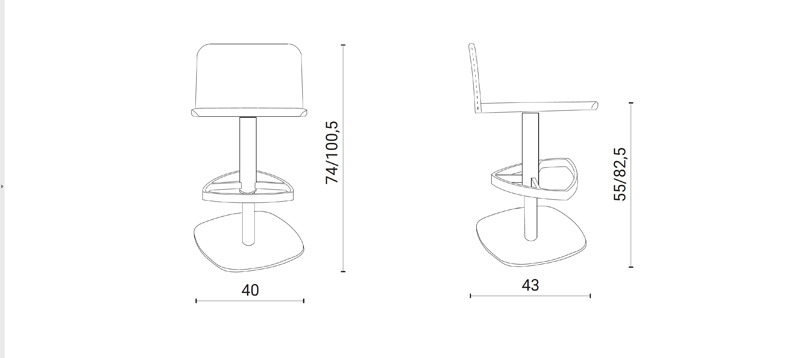 Sgabello con alzata a gas, basamento in metallo e seduta rivestita in pelle.