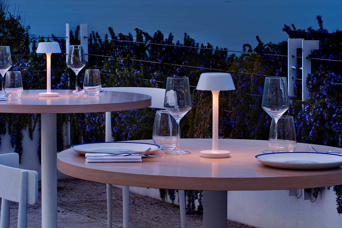 Firefly in the sky è un apparecchio a batteria da tavolo e a picchetto IP65. La testa removibile racchiude sistema di aggancio magnetico, batteria ricaricabile tramite USB-C, sorgente LED e comando Step DIM a 5 regolazioni di intensità luminosa. In funzione delle condizioni di utilizzo per una ricarica di circa 4 ore si stima un’autonomia di circa 6 ore con intensità della luce al 100% e di circa 24 ore con intensità della luce al 25%. Base antiscivolo già in dotazione. Disponibile doppio accessorio antitaccheggio, per fissare la lampada al piano e per vincolare la testa alla base, da ordinare separatamente. La versione picchetto consente di illuminare il verde ed i percorsi risolvendo ogni vincolo di posizionamento o collegamento e riducendo al minimo l’impatto sull’ambiente. Bianco, nero satinato, bronzo, titanio e champagne le finiture disponibili.