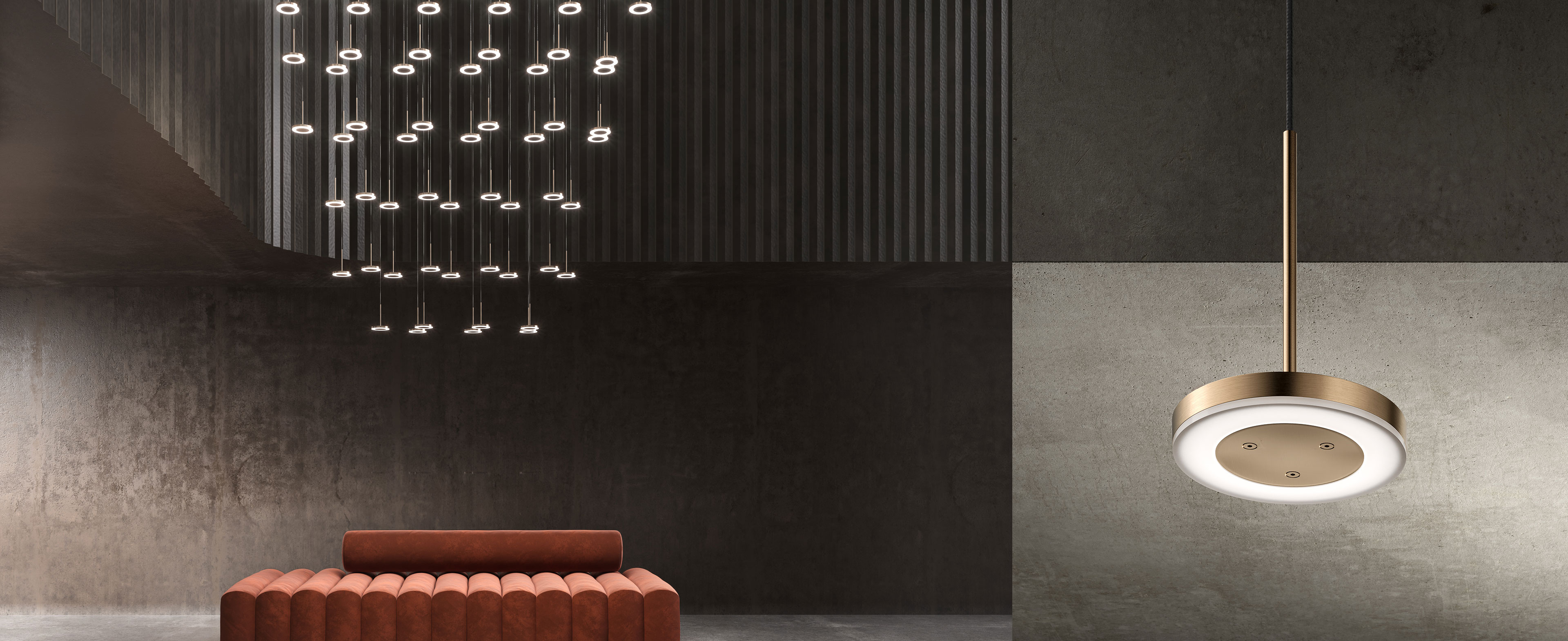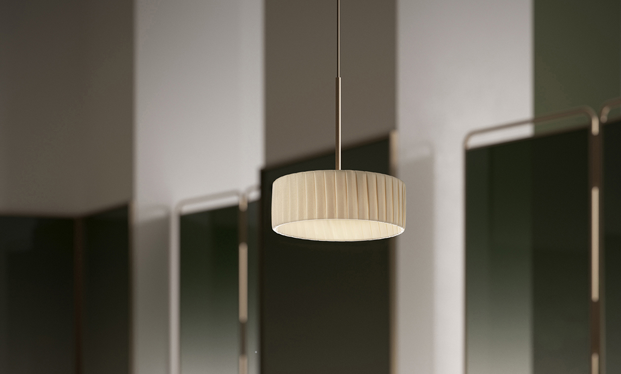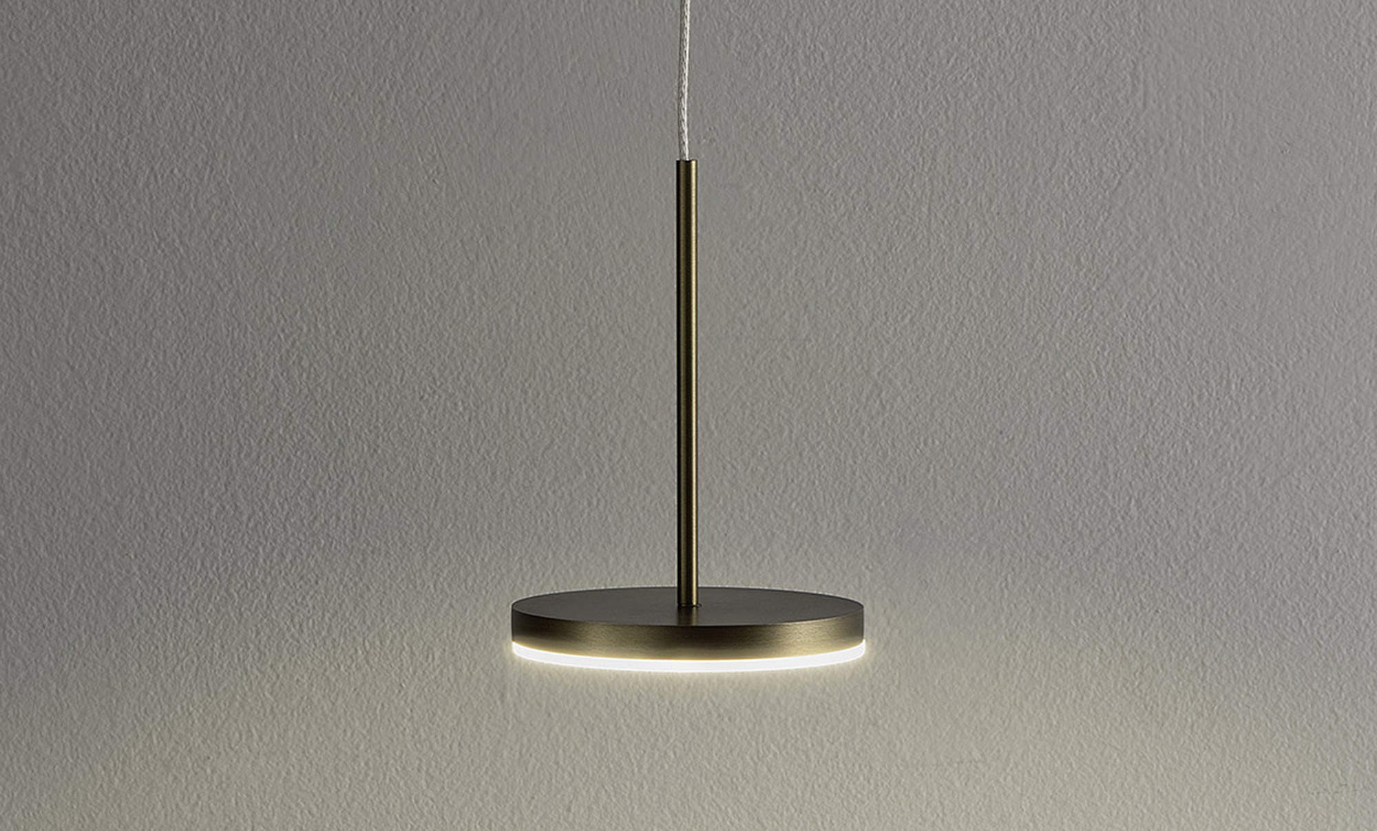 Lampada da sospensione, tavolo e parete (disponibile anche a incasso) con testa in pressofusione di alluminio. Diffusore in materiale acrilico con perimetro luminoso. Braccio conico decentrato, testa orientabile e comando Step DIM a 5 regolazioni di intensità luminosa caratterizzano le versioni da tavolo e parete, quest’ultima con snodo anche alla base, per una maggiore flessibilità nel posizionamento. La versione a sospensione, testa fissa e con tige centrale è disponibile in versione a emissione diretta e indiretta. Disponibile paralume in tessuto color avorio “Bella vestita” disegnato da Matteo Thun, da ordinare separatamente. Bianco, nero, titanio, bronzo e ottone satinato le finiture disponibili.