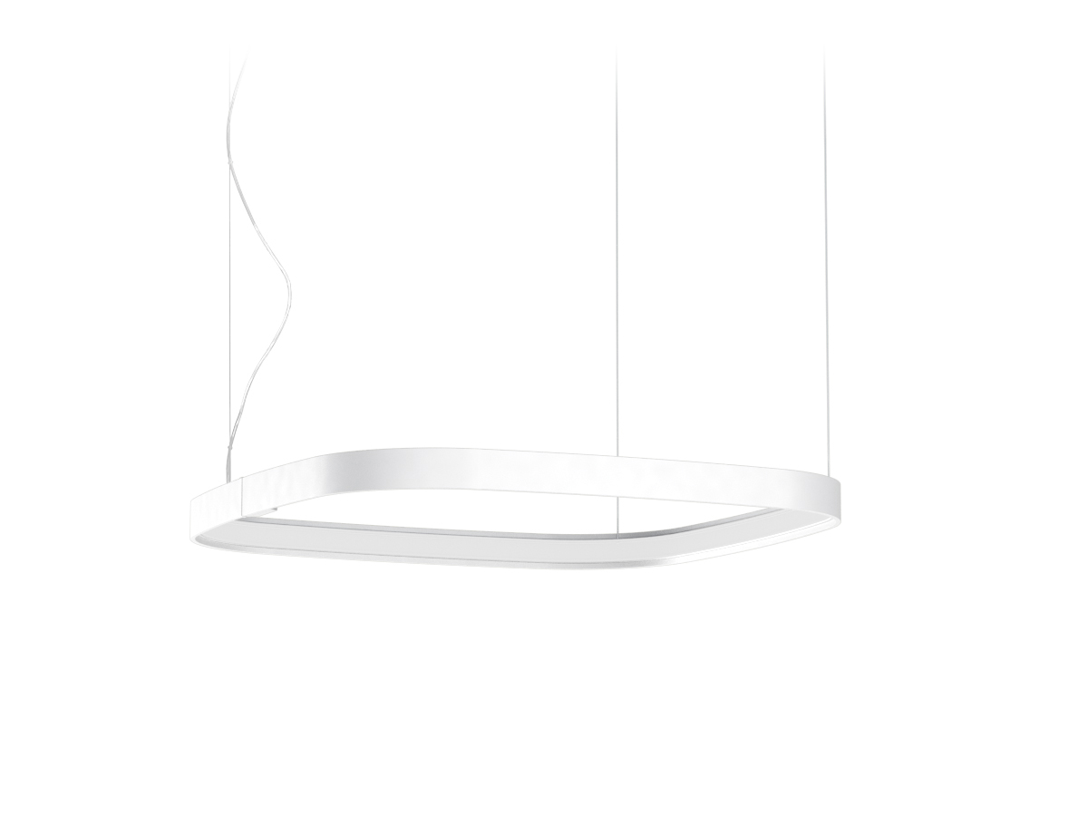 Lampada a sospensione in alluminio estruso curvato con schermo in policarbonato opale. Emissione interna attraverso modulo LED e tecnologia DALI/Push DIM di serie su tutte le versioni inserita nel rosone. Anello rifinito con vernice poliacrilica color bianco, nero, titanio, bronzo e ottone satinato. Possibili colori custom su richiesta. Disponibilità di rosoni per installazioni singole e composizioni multiple in abbinamento a Zero Ellipse e Zero Round da ordinare separatamente. Ideale per uffici, hall, zone living, grandi spazi, anche in abbinamento con Zero Round Acoustic e Arena Acoustic.