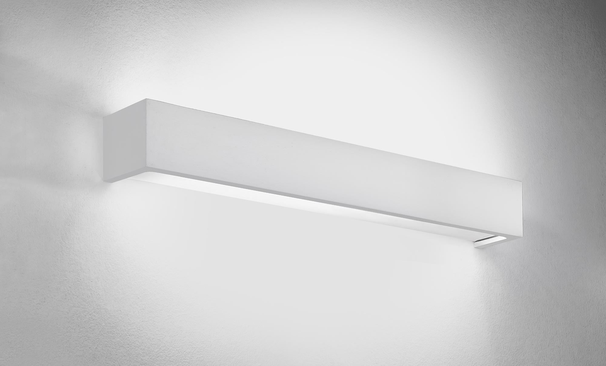 Lampade da parete LED in gesso. Montatura in metallo bianco e diffusori in vetro satinato.