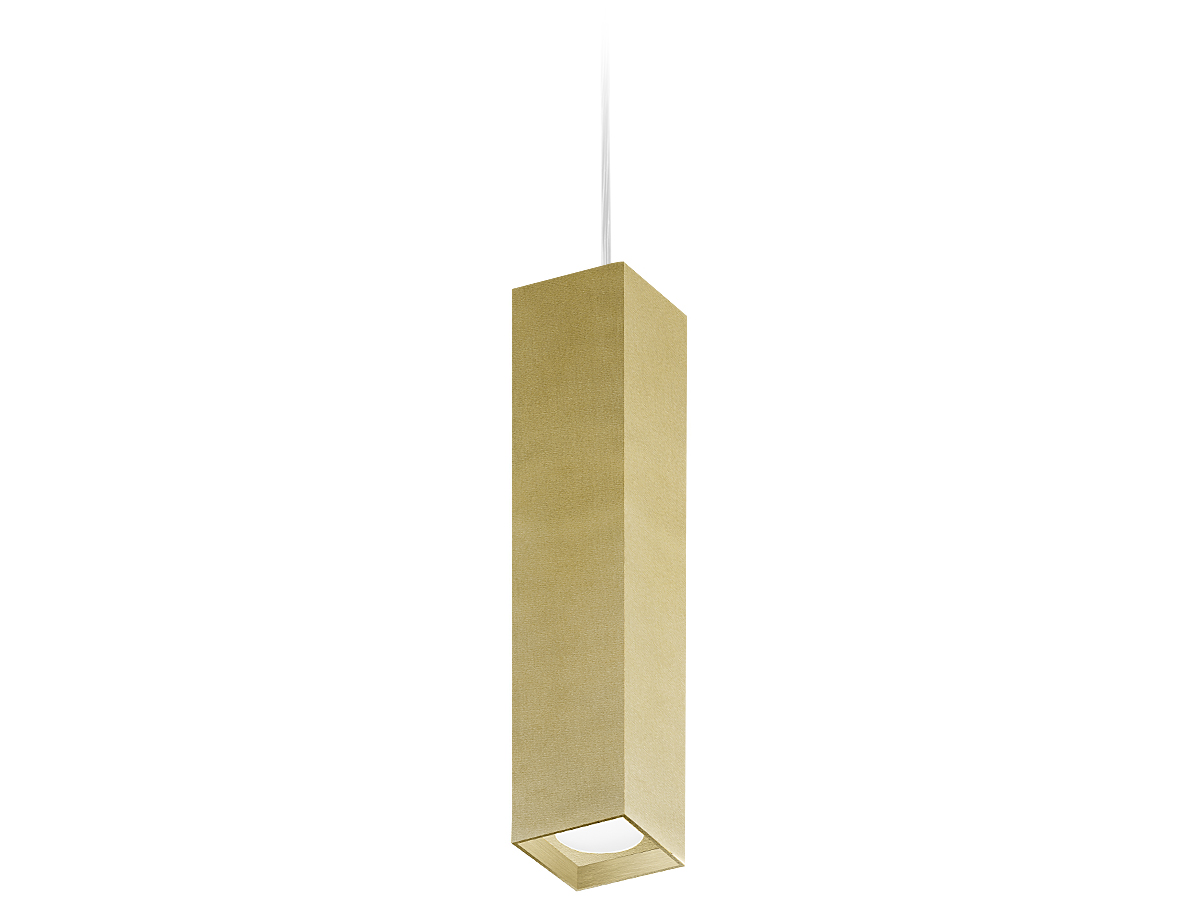 Lampade LED da sospensione e soffitto in tubo quadro di alluminio nei colori: bianco, nero, bronzo, ottone satinato e foglia oro.