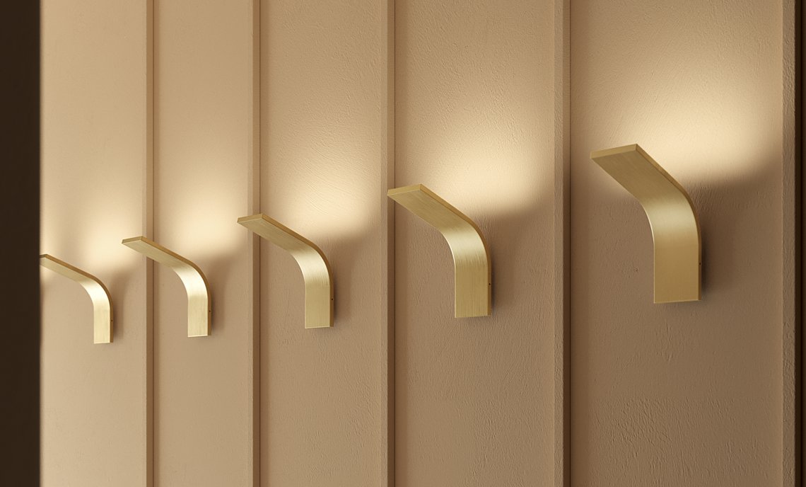 Wall lamp in extruded aluminium. Lighting source made of 1 LED module or 2 LED modules to mains voltage (220V). LED module equipped with special protection from power surges and transparent cover. Possible dimming with specific dimmer (not included) – available as accessory. White or mat brass polyacrylic paint or brushed and painted in titanium colour. Fixing with hidden lateral grub screw. Ideal for corridors or residential use.