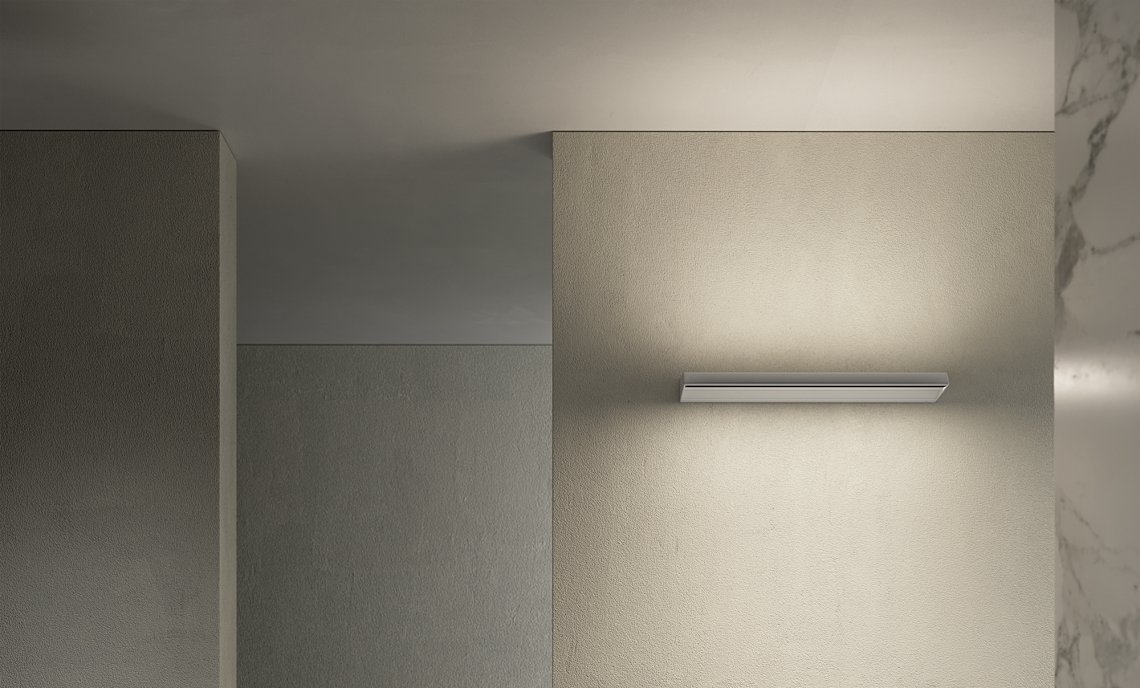 Gonio is a range of wall mount sconces that respond to the most elevated standards of visual comfort for the illumination of pathways or hospitality areas, such as corridors, waiting rooms, halls and offices. Precise geometries and essential lines make Gonio a product optimized for a better distribution of light upwards and downwards, thanks to the use of professional lenses with angle degrees engineered to avoid any kind of glaring. The body of the lamp is built in extruded aluminum with end caps in aluminum die-cast, available in white, black, bronze, mat brass and titanium finishes. It is offered in two versions with different lengths for greater application settings, complete with integrated dimmable driver for regulating the light intensity through DALI or Push DIM devices.