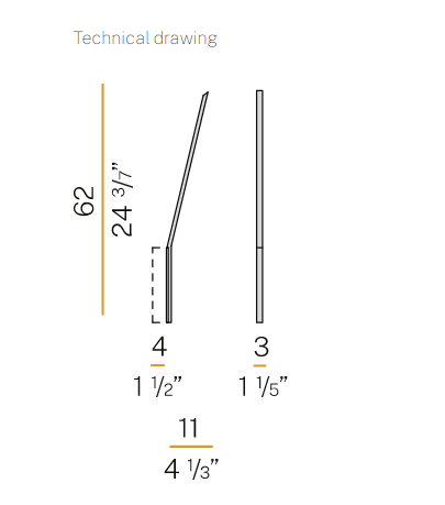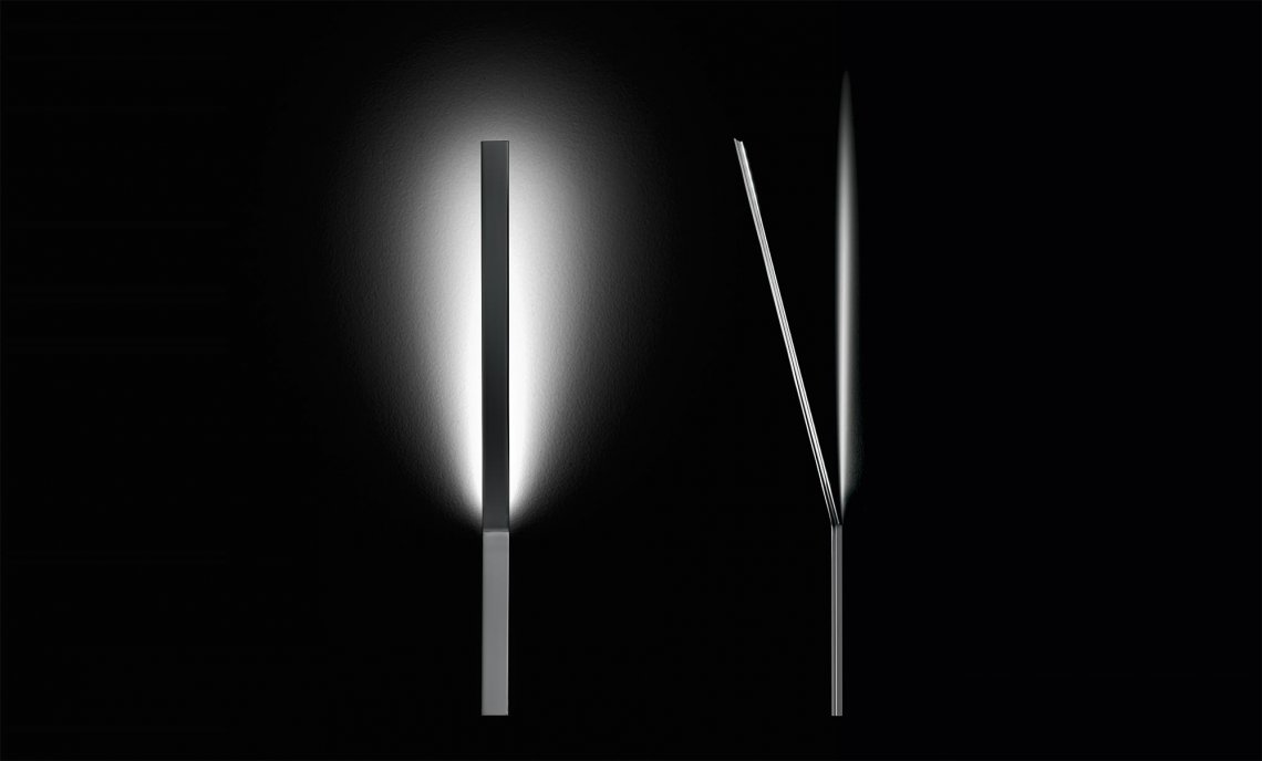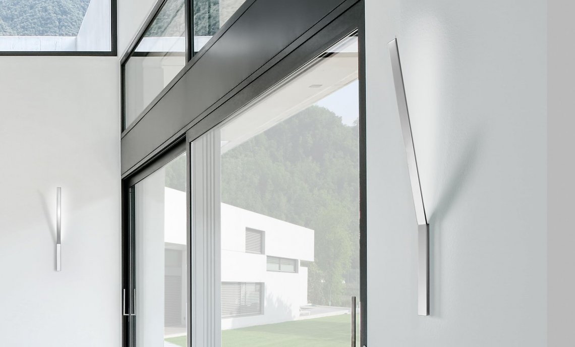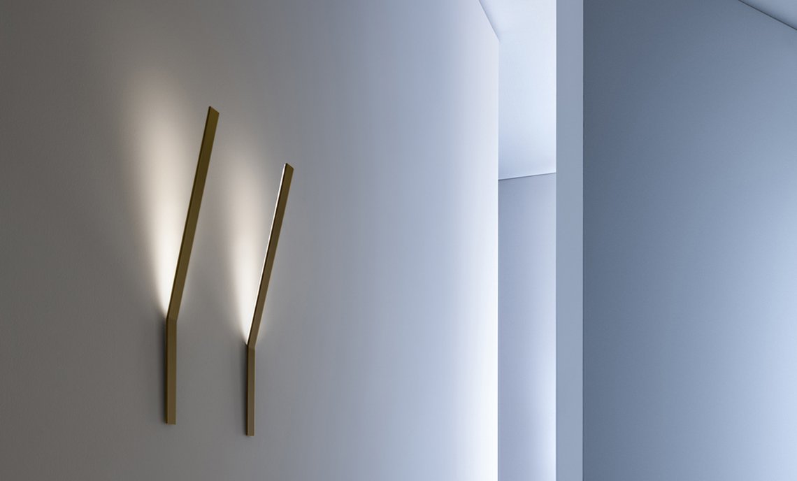 Wall lamp in brass bar. Indirect light emitted through a semi-opal polycarbonate screen. LED module. Fitting in white, black, bronze, mat brass polyacrylic paint or in chrome version. Two available versions: recessed mounting in the wall or external mounting. No visible fastening element. Ideal for residential spaces or modern hospitality facilities.