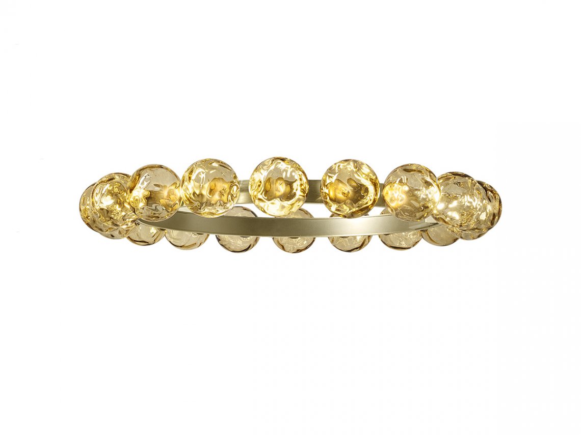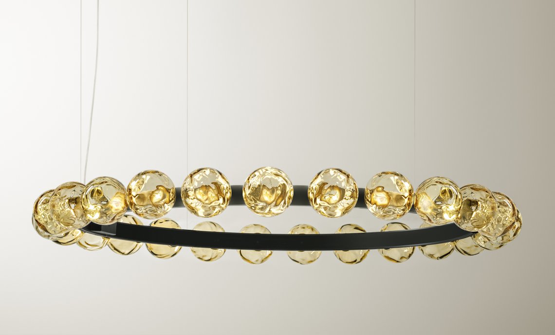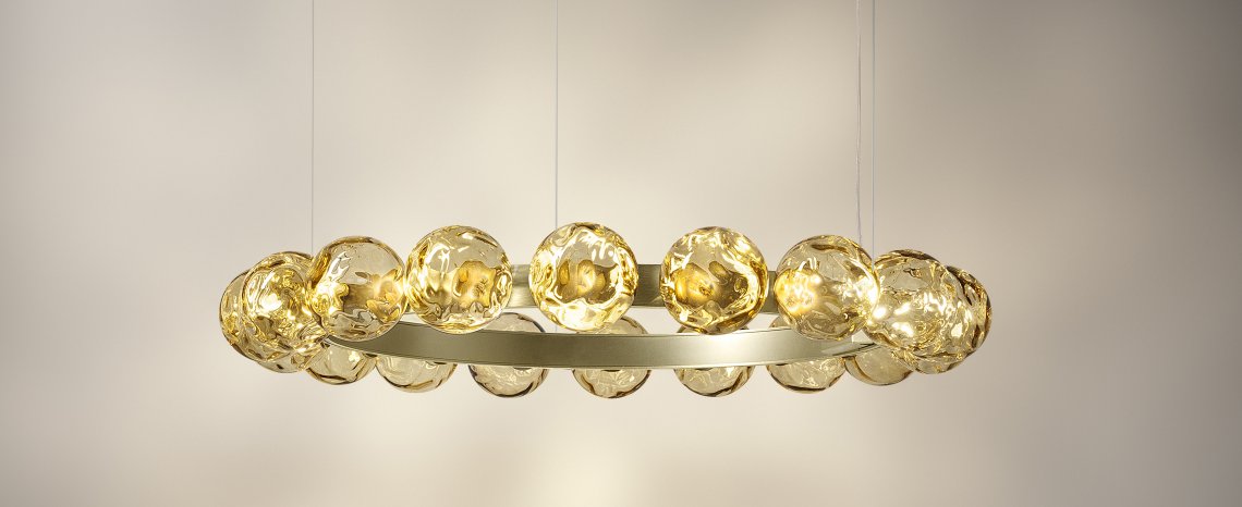 The tradition in the hand-made craftmanship of blown glass gives birth to Murané, a series of fittings to install as individual suspensions or customized clusters, or as partially recessed wall-ceiling mount fitting. The spherical diffuser in transparent bronze glass is hand-crafted with a wavy effect of great decorative effect. The LED source is minimal and hidden in a silicone cover, that ensures an optimal light diffusion. The suspension versions are available with individual canopy or without, in order to be combined with recessed or cluster canopies.
