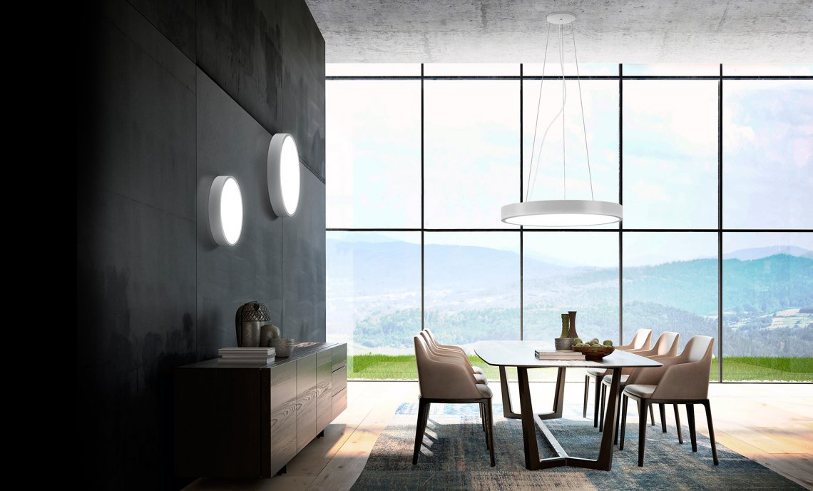 Suspension, wall/ceiling and recessed lamp in metal with high transmittance opal polycarbonate diffuser screen. Emission of direct light provided by a LED module. Possibility of having LED 4000K upon request. All versions are also available with DALI/Push DIM dimming or emergency light. Fixture finished in polyacrylic paint in white (custom colors available on request). The diffuser screen is fastened with magnets. LED board with quick connection for easy access to the electronic components on board. Delivery of the product in a single piece. Ideal for offices, hospitality facilities or residential use.