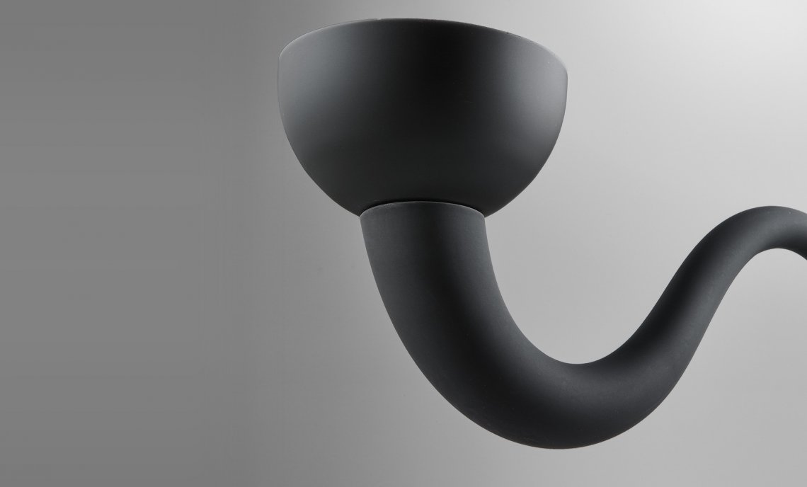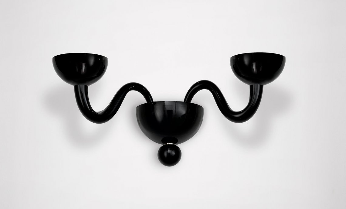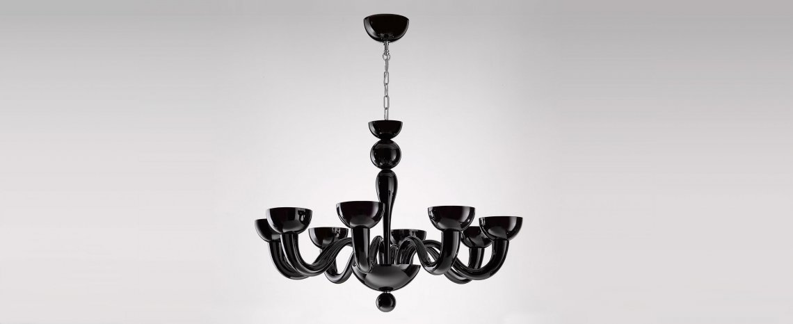 Realized with advanced techniques, it is the perfect combination of traditional craft of Murano glass blowing and Lombard mechanical technicity. Born to enlighten elegant and exclusive locations, it is an excellent furnishing accessory for modern settings, where Tate pure and original forms are well suited to the minimalism of the contemporary interior design. Available in mat black or white, it offers also a wide range of customization of the sections and the colors, meeting the needs of the most demanding customers. To ensure safety, arms have an elastic system that prevents the fall and the accidental breaking of the elements during cleaning operations. Tate houses halogen bulbs and is available in the hanging version (diameter 90 or 100 cm) and in the wall version.