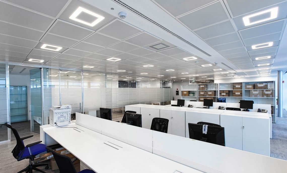 Wall/ceiling and recessed version (the latter only in the 60x60cm size) metal lamps. Front and side screens are each a sole opal polycarbonate piece. Direct light obtained by LED module. Available emergency light of 1h/12h for the recessed version. Supplied with DALI/Push DIM dimmer only in the 51cm version. Fixture in white polyacrylic paint. Available in gold/ silver leaf on request. Original luminescent lateral perimeter. The recessed version is set up for standard modular ceiling. Ideal for residential or office use.
