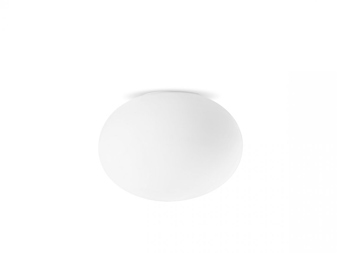 Suspension, table and ceiling lamps in blown opal glass. Metal frame in white polyacrilyc paint. Diffused light provided by different light sources (LED, G9, E27). Perfect and homogeneous distribution of the light, without any shadow. Ideal for residential use or for lobby areas in multiple compositions.
