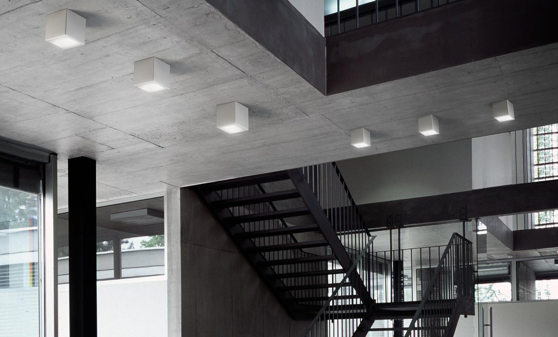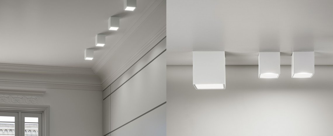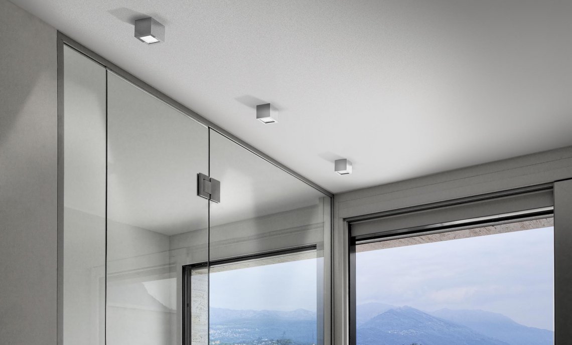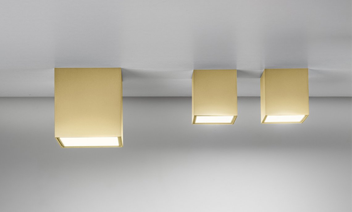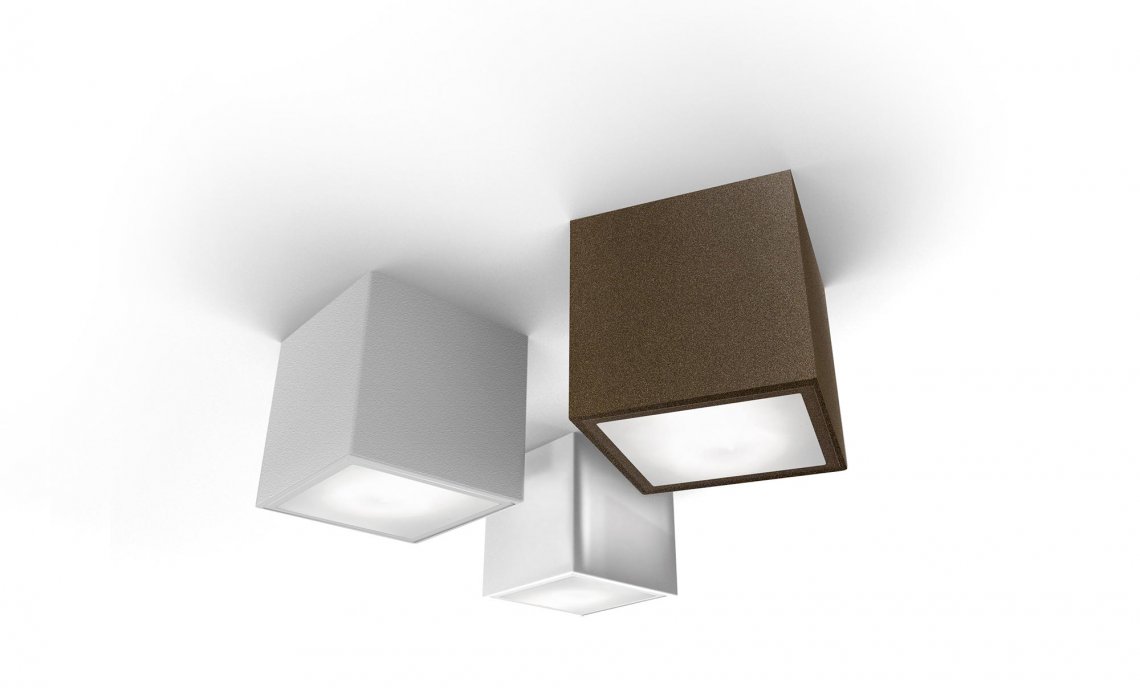 LED wall/ceiling lamp in aluminium colored in white, bronze, mat brass, black polyacrylic paint and mat glass.