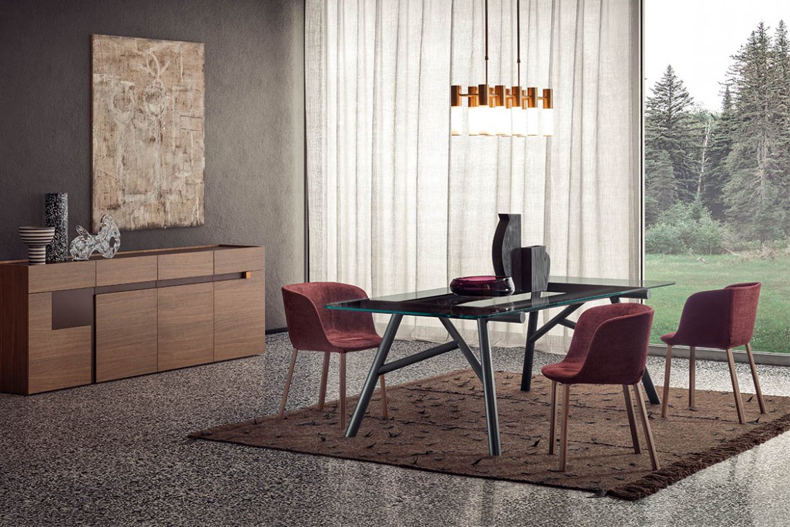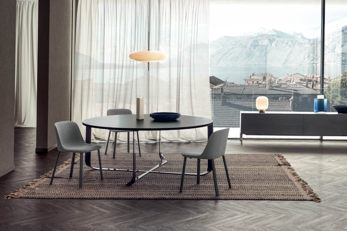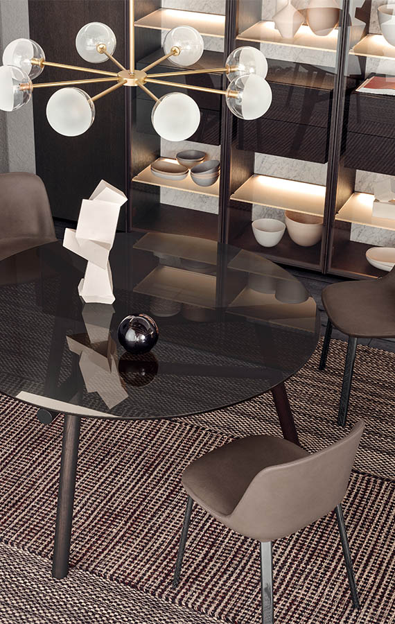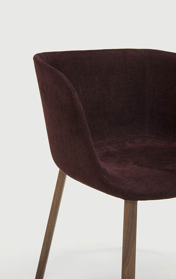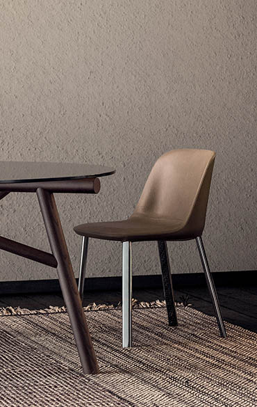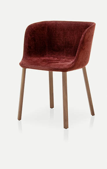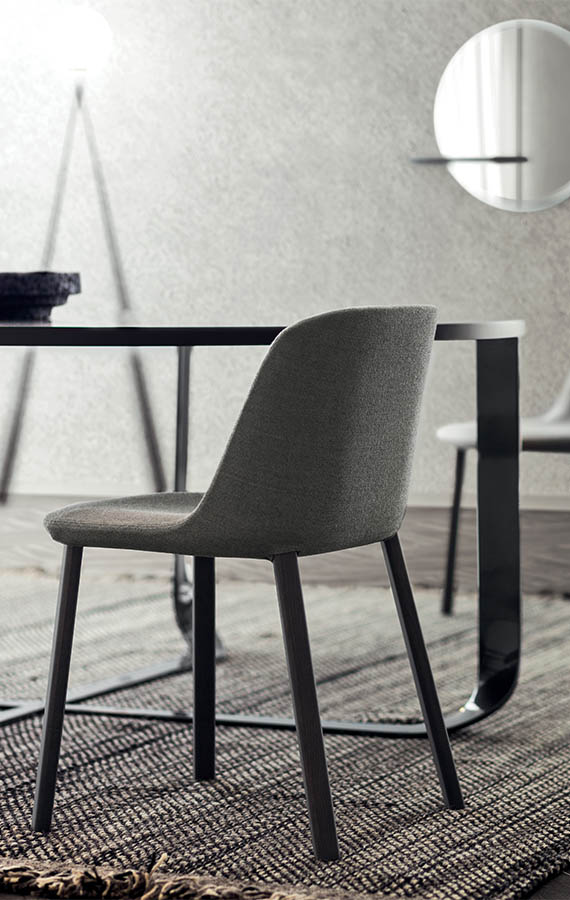The family of Esse upholstered chairs designed for Pianca consists of two armchairs, one of which has a solid base, and of one chair. “Esse” therefore recalls an iconic, continuous sign, the “S”, visible in the seat profile, and also the idea of femininity which makes the object welcoming, curvy and harmoniously designed. The polyurethane shell is covered in fabric.
