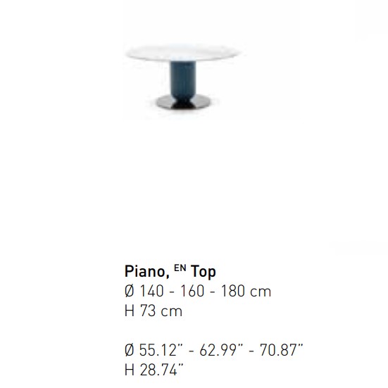 culptural, symbolic, bold: the table stem from a desire to have fun assembling three classic, primary, geometric elements in an ironic way. Ettore pays homage to master designer Ettore Sottsass, a visionary pursuer of design that would break the traditional aesthetic rules, going beyond the purely ornamental and venturing into the realm of emotional, social as well as aesthetic experimentation. The intention behind the Ettore table was to pay tribute to this philosophy and to aggregate, surprise and stimulate. The central leg, monumental in size, tapers at the base to produce a lighter look and suggest an ironic contrast between the parts and an unexpected effect, fooling the eyes into believing it doesn’t touch the ground. The effect is emphasized by the choice of materials: the shiny metal of the plate forming the base reflects the leg, producing the illusionary impression that the table is suspended and precariously balanced. Going back to their childhood, Calvi Brambilla drew inspiration from the playful principle of the roly-poly toy. The two designers successfully paired the idea of the toy with the vision espoused by Pianca, champion of an elegant, pared-back language punctuated by premium materials and finishes.
