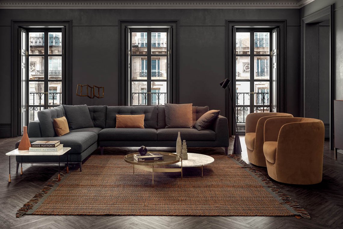 Vintage elegance with a modern soul. Time offers a modern take on the traditional sofa. Dainty and moderately-sized, its forms add a touch of charm to any room. Its tapered armrests and base give it an elegant, slender appearance. The solid wood feet feature a wood finish or are available in the collection’s matt lacquer colours. The plain or quilted backrest can be complemented by cylindrical headrests. The wide range of modules is perfect to create a great variety of combinations. Also available in the bed version with a floor-standing structure.