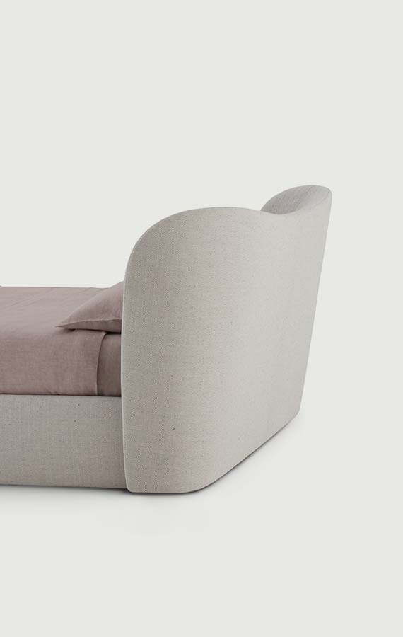 Its classic-inspired forms are reassuringly solemn, distinguished, yet also inviting. The refined simplicity of the Embrace bed echoes the warmth of an embrace, a retreat to a safe haven. The dominating feature of the bed, the curved headboard, cocoons the main body of the bed in an inviting, material embrace, offering protective, reassuring shoulders. The version without an underbed storage container can accommodate a recessed mattress. Concealed legs raise the structure a few centimetres off the floor in a delicate, almost indiscernible appearance of floating.