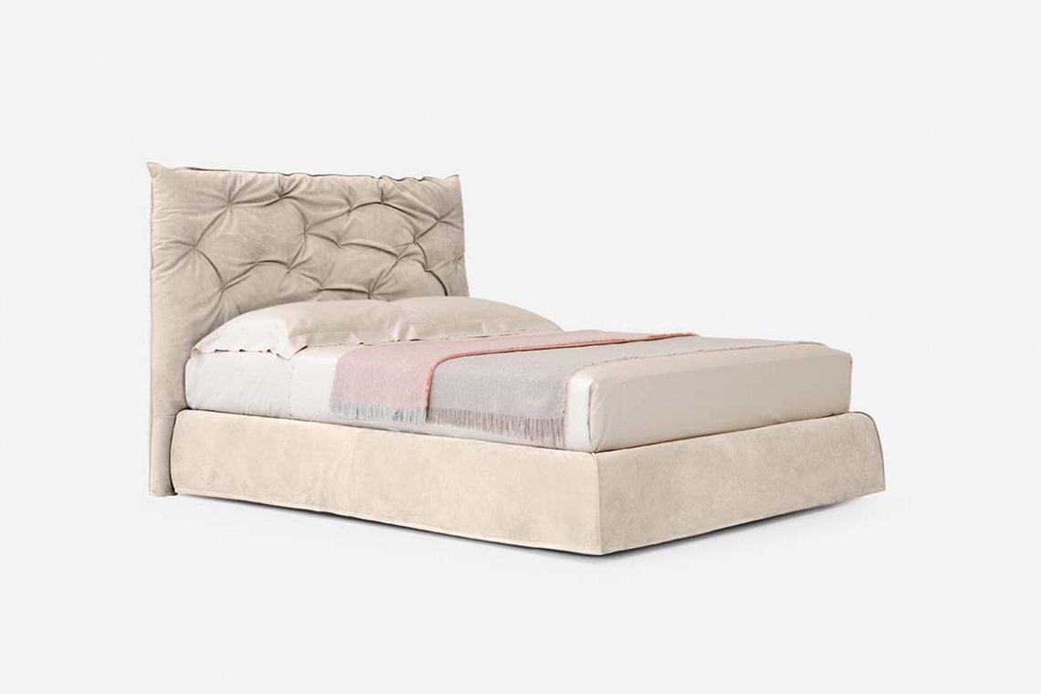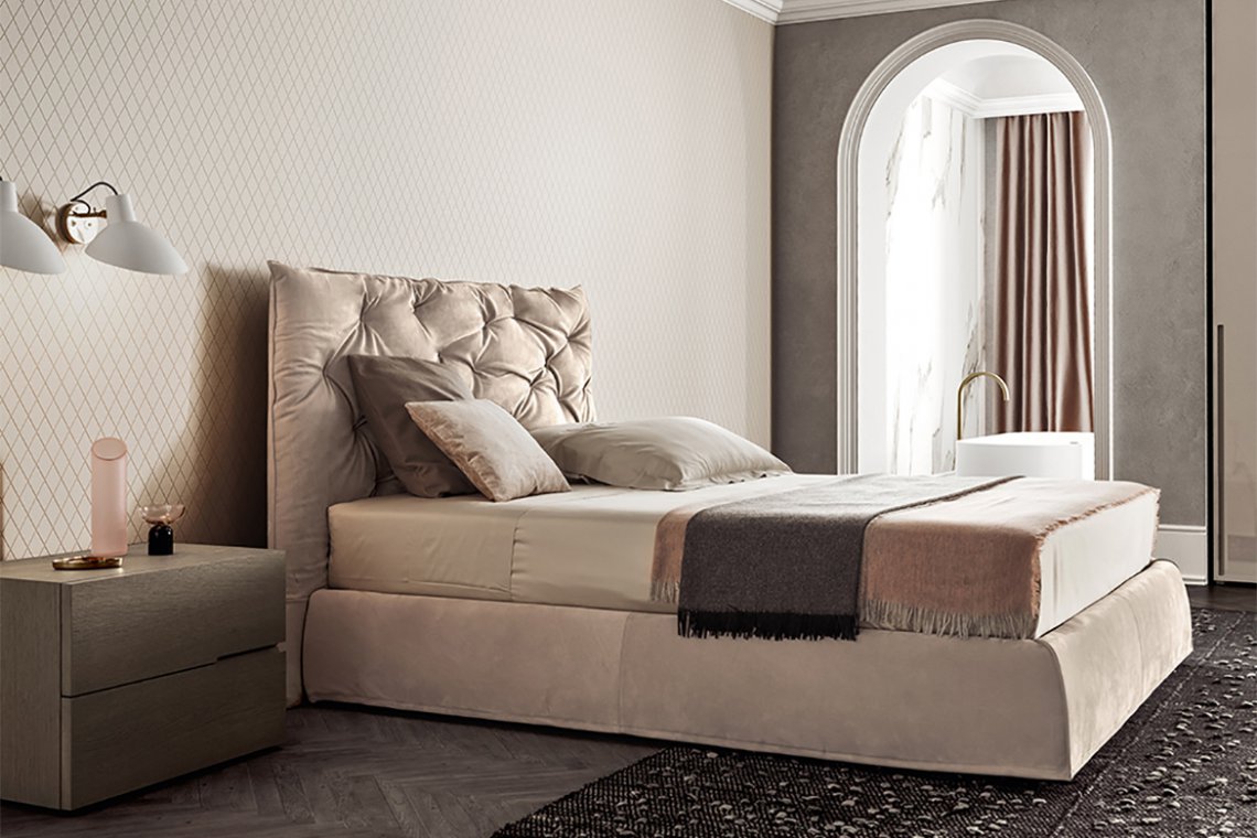 Renewed and redefined, tradition is dressed up with contemporary, beautifully-fashioned accents. This imposing, refined design is dominated by the charm and prestige of the tufted finish, sewn strictly by hand. This finish goes beyond the classic, diamond-shaped pattern, following its own original, asymmetric design and informally dynamic style. The already large and magnificent headboard is even taller and more majestic in the Maxi version.