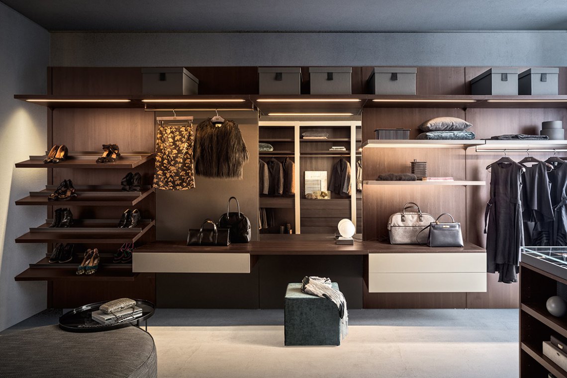 Every day of our lives – as well as on special occasions – we repeat the ritual of choosing what clothes to wear and which shoes and accessories to use with them. Anteprima has been designed to accompany and inspire our choices. Practical, fascinating elements allow unsurpassable freedom of arrangement and can be customised in a wide range of finishes to meet the most demanding requests. Available with or without back panels, the structure can be completed by lots of different modular elements such as shelves, drawer units, suspended cubbies and hangers.