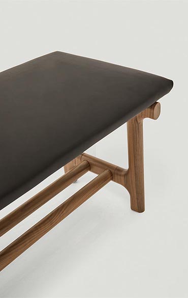 Philippe Tabet produces the Fushimi family of furniture, closely linked to the Inari series, inspired by one of Kyoto’s most important sacred places: the Fushimi Inari temple. The simplicity and harmony of these architectural elements so dear to Japanese culture struck a chord with the designer, who has chosen to echo the structure, traditionally formed of two vertical columns supporting a horizontal post on top. As a reinterpretation of this arrangement on a much smaller scale, Fushimi makes it the key feature of its design. Solid ash wood is the hero of each piece, lovingly milled and turned so that there are no sharp edges, instead displaying a delicate tactility. The same meticulous care is also evident in the joints, softly delineated to ensure the lines flow with unbroken continuity and connect the parts for a harmoniously seamless look. Symmetry, balance, elegance and formal minimalism form the underlying theme of Fushimi, which effectively conveys an idea of lightness and essentiality.