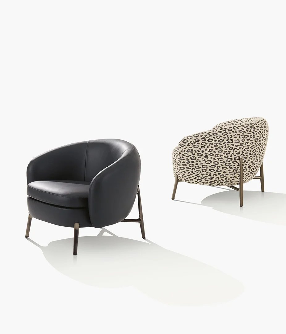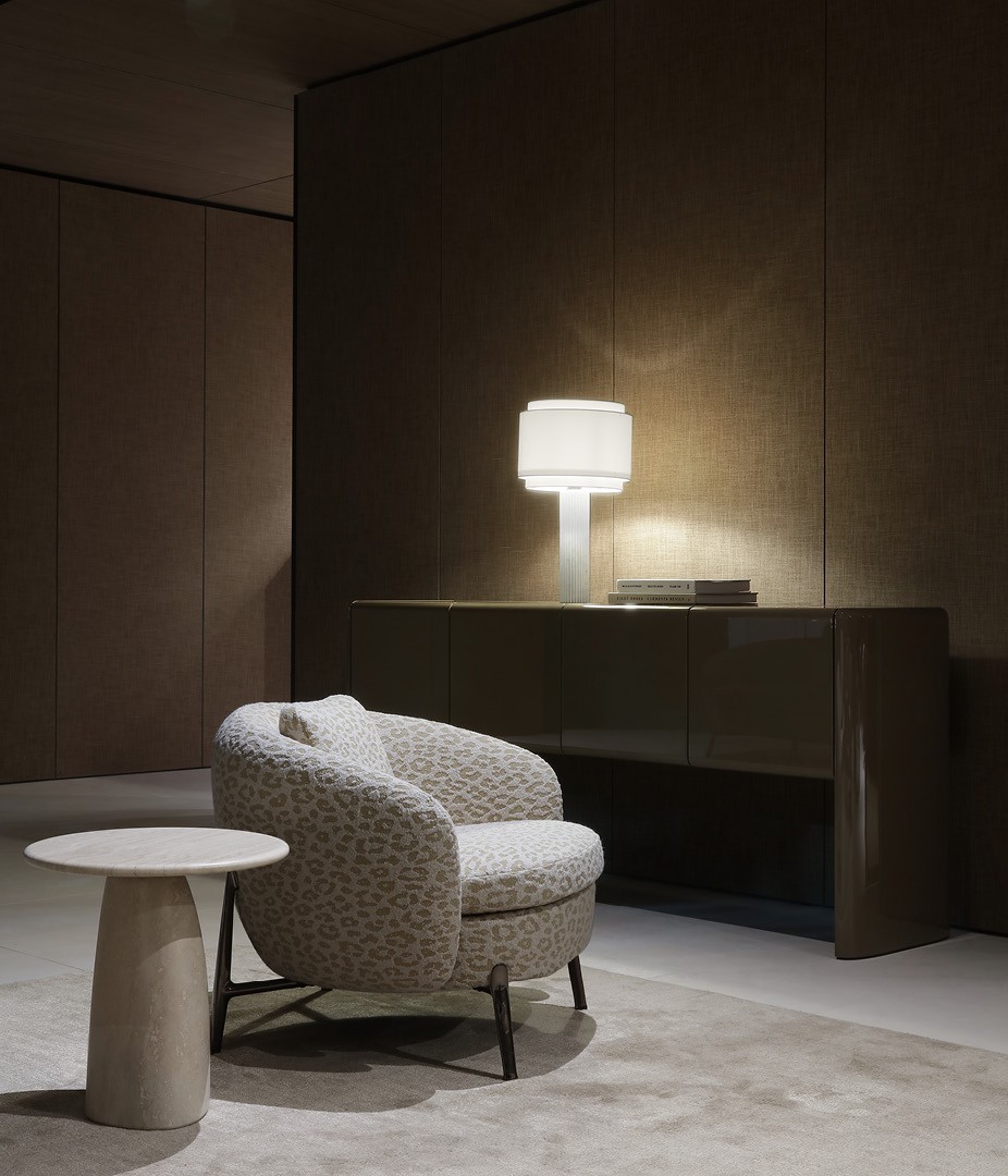 Orbis系列為Poliform家具世界增添了更加親密的空間維度。 扶手椅憑借彎曲包覆的靠背,于客廳中營造出一方專享領地,適于交流、放松及享受生活之趣。座椅的寬敞形態與精細的金屬支腳形成微妙平衡,展現了卓越的工藝水準與裝飾面處理藝術。