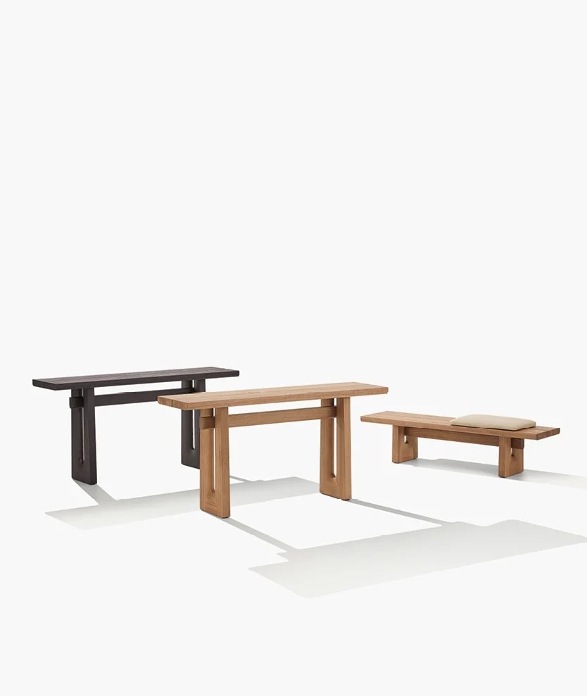 The Nara collection has been expanded to include two new elements: a bench and a cabinet, which are the natural evolution of the coffee table by the same name. They too are made of solid wood, and crafted with a process inspired by the art of cabinet-making. The bench and cabinet are versatile pieces: suitable for the bedroom or hallways, they stand out for their solid and elegant material quality.