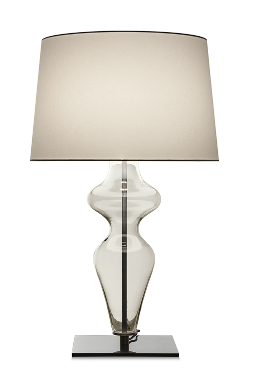 Holly燈具備有落地燈和檯燈可供選擇。外形為透明玻璃,描繪柔軟纖細的線條,輕巧勾勒出女性輪廓。支撐底座以噴漆金屬製成。底座和燈桿、以及燈桿和燈槽間的連接採用拋光黃銅。配有雙層燈罩,外層為帆布,內層為PVC。落地燈版本的Holly是配有雙層燈罩的。