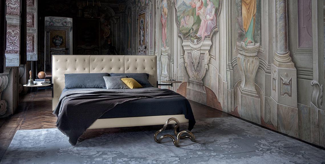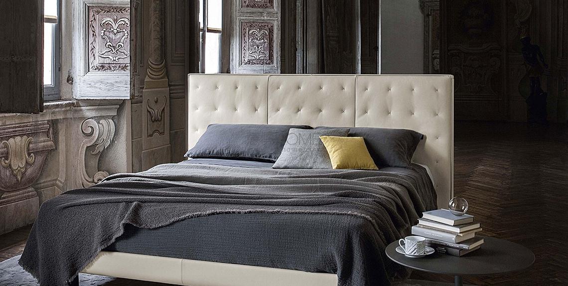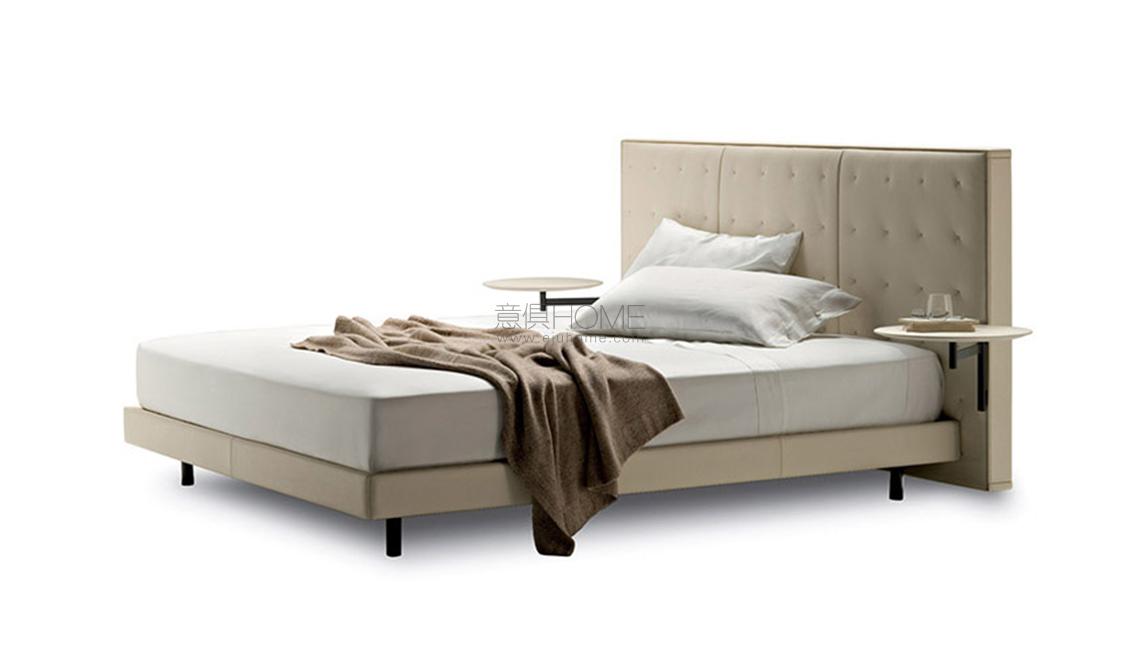 Jack床由Jean-Marie Massaud設(shè)計,其氣場和特性能夠定義環(huán)境。超大且方正的床頭,飾以輕盈細膩的手工縫制X圖案,展現(xiàn)Poltrona Frau歷史悠久的手工藝技能。Jack可以在床頭兩側(cè)添加兩個置物平臺,與床包覆相同材料。