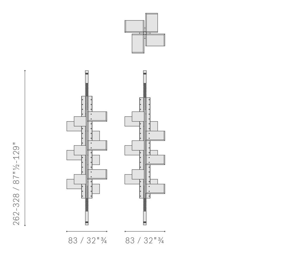 其結構特色一方面來自復雜的細木工藝,另一方面則出于雕塑技法的使用,另其成為空間中的核心元素。Albero書柜的支撐結構采用黑核桃木實木。由兩根咬合方柱構成,采用特殊的齒軌式嵌套,此外還有四根垂直支柱,帶有調節孔,可以根據喜好安裝八個或十二個架板。這些架板使用中密度木質纖維,鑲貼實木片。天花板和地面處的包頭安裝在咬合方柱兩端。上側包頭嵌在固定在天花板上的“圓管”內。下側包頭通過防滑橡膠確保緊貼地面。在固定包頭中配備的四個金屬箍筋的作用下,實現書柜的固定。固定件的表面處理(包頭和圓管)為仿舊鍍色鋼。下側咬合方柱上,激光鐫刻設計師簽名和Poltrona Frau徽標。Albero書柜可360°旋轉。如有需要,架板平面可以添加厚度4毫米、帶有同色深淺染色邊框的Cuoio Saddle皮革墊層,起到裝飾和保護作用。墊層四周有手工鐫刻裝飾以及Poltrona Frau熱印徽標。