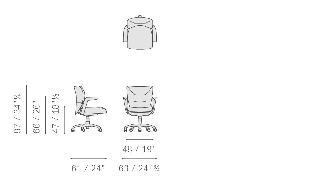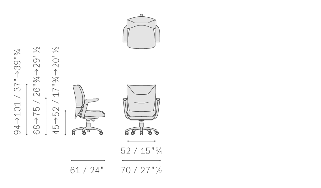 Brief小扶手椅采用鋼制結構。帶扶手版本中,可以將扶手高度調整延長6 cm,而靠背則總是可以調整升高+ 6 cm。Brief表面覆蓋Pelle Frau?軟皮,也可為雙色。扶手使用手工縫制覆層。五支腳底座可以使用黑色噴漆或拋光鋁,可以配備不同類型的輪子或滑軌。President和Executive款式配備“Syncron”系統,允許靠背和座椅振蕩,也可以縮小振蕩幅度。振蕩移動使得扶手椅能夠極為輕松的跟隨身體動作,適應身體移動,保證卓越的舒適度。Meeting版本使用旋轉機械系統,能夠回復到原始位置。