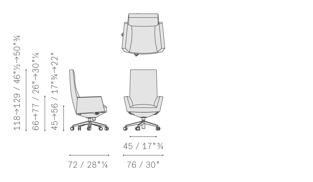 Chancellor President、Executive和Managerial版本可以調整高度并自動旋轉,靠背和坐墊配備精巧的“Syncron”振蕩機械系統,有5個連續的停留位置,從垂直到真正的躺椅位置。Chancellor Visitor扶手椅配有復雜的旋轉系統,憑借推力滾珠軸承,允許扶手椅自動轉動,并回到初始位置。Chancellor扶手椅支承基座采用鍍鉻或深灰色噴漆鋼。President、Executive和Managerial版本五支腳底座帶有軟質自鎖輪或滑軌,Visitor扶手椅四支腳底座帶有滑軌。扶手覆蓋軟皮,通過末端貼片固定在拋光或深灰色噴漆鋁制結構上,與底座配合。覆蓋Pelle Frau?軟皮,如有可能,也可延伸至“Syncro”運動蓋板上。它是Chancellor Conference滑軌扶手椅系列的一員。