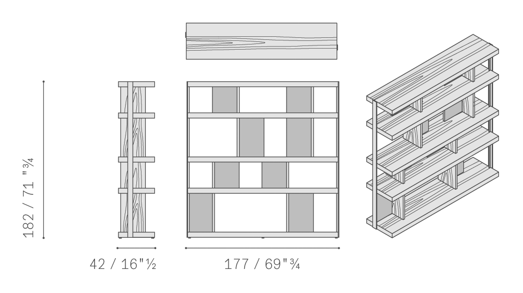 垂直支柱使用汞色鋼材,采用特色T型截面,是Jobs各款家具的特色所在。中密度纖維板小門板覆蓋Pelle Frau?軟皮。所有其他元素、架板、隔槽和背板也使用相同的材料:汞色或煙草色橡木貼面與典雅的拋光和啞光表面交替。Jobs低柜結(jié)構(gòu)采用中密度木質(zhì)纖維板,鑲貼汞色或煙草色拋光表面處理橡木,頂板則使用啞光表面處理。底座使用汞色噴漆軋光鋼,搭配可調(diào)節(jié)底腳和中心連接橫撐,黑色噴漆,采用防劃表面處理。Jobs Bookcase高柜和低柜后側(cè)配有可翻轉(zhuǎn)門板,門后是一個(gè)內(nèi)部小隔槽,用于接出纜線,通過(guò)沿整個(gè)表面橫向排列的溝槽從地板處一直延伸到頂板。