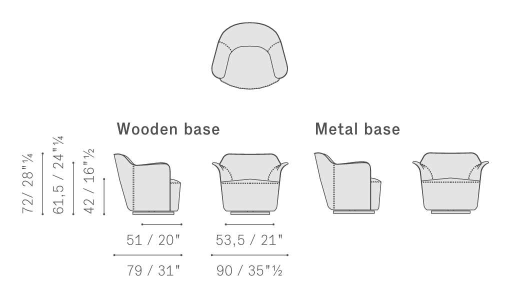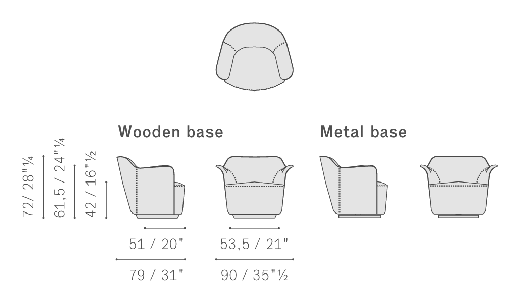 與Poltrona Frau檔案館的經典款式一樣,陳年櫸木和樺木膠合板座墊彈簧結構運用手編鋼制雙錐形彈簧,固定在黃麻帶上。靠背主體和座椅包墊采用最先進的技術,填充聚氨酯泡沫,印壓成型。除完全包覆Pelle Frau?軟皮并配有軟皮或全粒皮外包周邊滾邊的款式之外,Aida扶手椅還可在外表面使用Pelle Frau?軟皮,內表面使用布藝(使用布藝外包滾邊)。此外還可選擇在主體上使用Cuoio Saddle Extra,內部使用Pelle Frau?軟皮或布藝,外包滾邊使用Cuoio Saddle Extra。Aida有固定款和轉椅款可選。