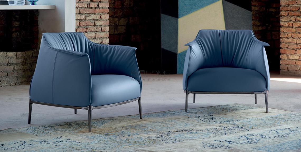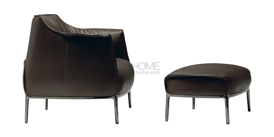 Jean-Marie Massaud通過Archibald成功實(shí)現(xiàn)了形狀與實(shí)質(zhì)的完美結(jié)合:Archibald扶手椅和圓沙發(fā)凳具有舒適包容的設(shè)計(jì),引人沉思和放松。寬大而深厚的坐墊與纖細(xì)的支腳平衡,為整體帶來輕盈而修長(zhǎng)的效果。Archibald扶手椅中,皮面在縱向折痕技法的宜人襯托下,因沿著覆層邊緣和外表面排列的對(duì)比色縫線而愈顯珍貴,帶來細(xì)膩典雅氛圍。