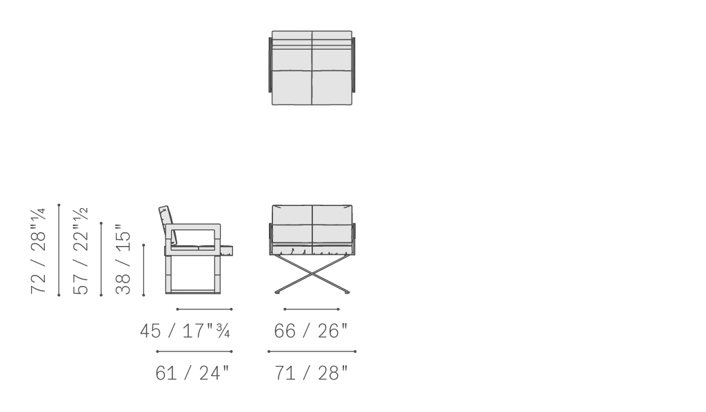 Aster X扶手椅采用鍍釕鋼制扶手,上部覆蓋Pelle Frau?軟皮。座椅框架采用櫸木實木。座椅和靠背上部彈簧結構使用松緊帶,而包墊則填充聚氨酯泡沫和聚酯棉。沿著邊緣和外表面上制作的對比色縫線令表面處理愈顯珍貴。