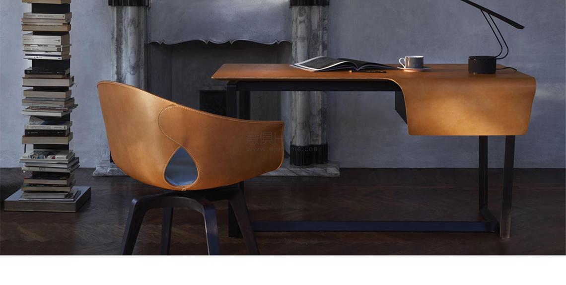 在設計Ginger小扶手椅時,Roberto Lazzeroni帶來一款精致、簡單的座椅。由皮革和軟皮構成的鳥巢狀外殼,精簡、舒適。Ginger小扶手椅具有包容和保護感,裝飾典雅針腳,沿整個外周延伸。Ginger的設計初衷不僅是成為Fred寫字臺的天然伴侶,也可作為獨立座椅,旋轉版本完美適合書房,固定版本完美適合起居室餐桌。