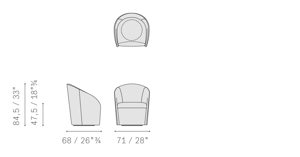 Intervista是一款帶有支撐結構的扶手椅,主體和座椅使用鋼材,覆蓋印壓聚氨酯。座椅彈簧系統采用松緊帶。Intervista小扶手椅外覆Pelle Frau?軟皮。此外還有另外兩款:Intervista Twist,坐墊更加寬大舒適,配有單向前輪和后側自轉輪。Intervista 360°則使用旋轉底座,能夠圍繞自身旋轉。